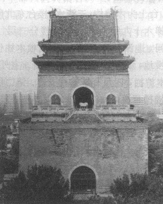 | 释义 | 北京钟楼位于北京东城区地安门外大街,鼓楼之北,是北京中轴线上最北边的一幢楼阁。旧址是元代万宁寺的中心阁,“阁四阿,檐三重,悬钟于上,声远愈闻之”。内部全部结构是砖石材料,雄敞高明。明永乐十八年(1420年),改建为钟楼,不久遭火焚毁。清乾隆十年(1746年),奉旨重建,十二年落成。这次重建全易以石质,《大清会典》载“(钟楼)柱、棁、榱、檩,悉制以石”。钟楼通高四十七点九五米,宽三间,深三间,重檐歇山顶,灰平瓦绿剪边,底部为高大砖石平台,四面开券,平面呈十字相交。楼前有两层台阶,楼内正中有大木架一座,上悬大铜钟一口,钟壁厚二十七厘米,重达数万斤。旁吊有二米长的大圆木,用来撞钟。清代每日黄昏,钟楼撞钟一百零八响,时有民谚说:“紧十八,缓十八,六遍凑成一百八”。翌日清晨再响一次。声音宏亮,城内外十余里,莫不皆闻。