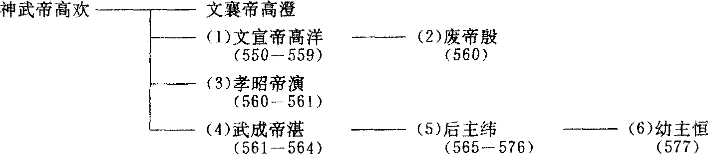 尔朱荣死后,部将高欢倒戈,消灭尔朱氏势力,拥立孝武帝。永熙三年 (534), 因高欢擅权, 孝武帝被迫西走长安。同年, 高欢另立孝静帝, 迁都邺城, 史称东魏。武定八年(550),高欢子高洋废东魏自立,改国号齐, 史称北齐。东魏、北齐政权掌握在六镇鲜卑贵族手中, 排挤、打击汉族官僚, 所任将相大臣绝大多数是鲜卑人或鲜卑化的各族人,放任他们贪赃枉法,欺压汉族人民; 经济上也首先满足他们的利益, 如重颁均田制,而宣布邺城30里内皆为公田,赐予六镇南迁的鲜卑贵族、官僚和禁卫军将士。与北魏孝文帝推行汉化相反,大刮鲜卑化之风,提倡鲜卑语与胡书,恢复鲜卑族习俗。由于阶级矛盾和统治阶级内部矛盾都十分尖锐, 东魏、北齐的国力不断削弱。