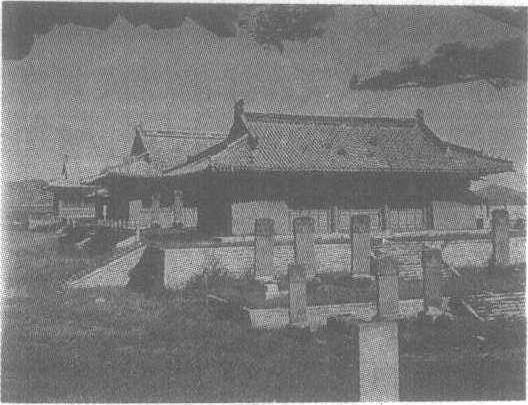 北镇庙 北镇庙中国古庙。位于辽宁省北镇城西医巫闾山脚下,是中国五大镇山之中现存唯一的1座大型山神庙。是明永乐十九年(1421)重建和弘治八年(1495)重修扩建起来的。北镇庙占地约2.2万m2,东西宽109.5 m,南北长204 m。庙中主要建筑为御香殿、正殿、更衣殿、内香殿、寝殿,建在1个工字型高台上。五大殿之前建有石牌坊、山门、神马门、钟鼓楼等,之后有仙人岩、翠云屏等。 |