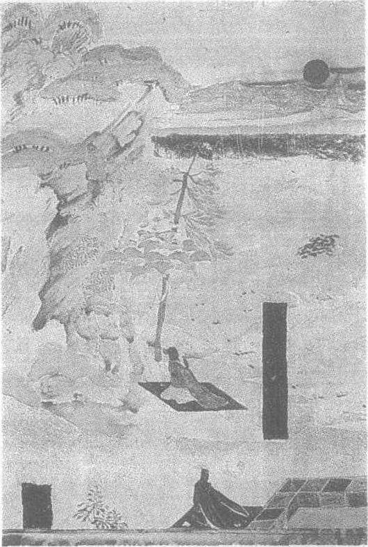 | 释义 | 十六观图(日想观)壁画盛唐。纵55厘米,横42厘米。甘肃省敦煌县莫高窟第320窟北壁西侧壁画。十六观系画王后韦提希夫人被其子阿阇世囚禁,囚室内见佛,佛为之讲说16种“观想”修行方法。此为其中之一“日想观”。画面上韦提希夫人静跪于山崖下的大树旁,双手合十遥望着远在天边的一轮红日,其红色染映着天际。这红红的太阳,大自然的魅力与韦提希夫人此时的心情形成强烈对比,令人产生许多的感叹。作者用笔豪放、粗犷,景物的透视关系处理得当,晕染也十分出色。