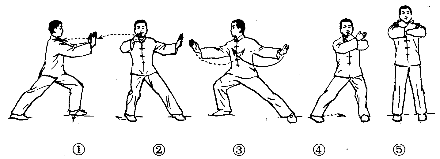 太极拳动作之一。十字手主要出现于杨式、吴式太极拳中,并多接于“如封似闭”动作之后。动作过程:从左弓步双推掌开始。(图2—4—54—
