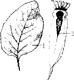 黑腐病 1.甘蓝病叶 2.萝卜病根 |