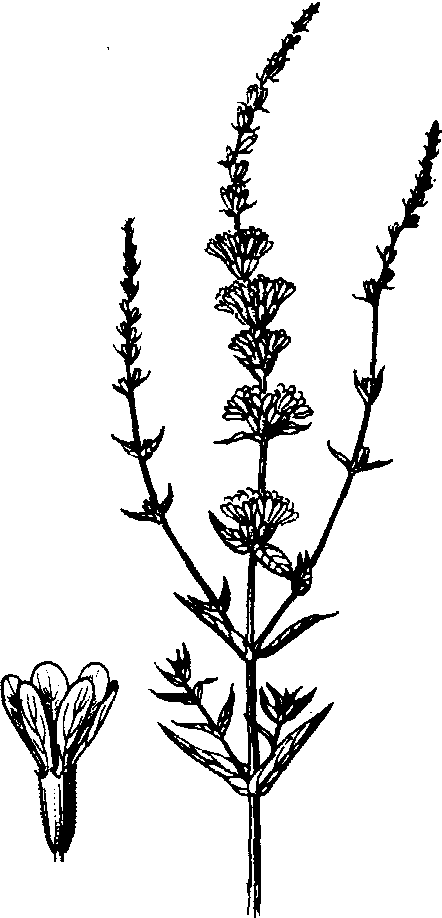 | 释义 | 千屈菜purple lythrumLythrum salicaria,别名水柳。千屈菜科千屈菜属多年生草本植物。染色体数2n=30。地下根茎粗壮,地上茎直立,高30~ 100cm, 茎四棱,多分枝。单叶对生或轮生,披针形,全缘,无柄。穗状花序顶生,小花多数密集,紫红色,萼筒长管状,花瓣6。花期7~9月。有紫色、大花、桃红色、毛叶等变种。原产欧亚温带,美洲大陆及中国南北均有野生。耐寒,喜强光、潮湿及通风环境。浅水中生长最好,也可旱栽,不择土壤。用播种、分株或扦插繁殖,以分株为主,春秋均可。夏季扦插,30天左右可生根。播种繁殖,10天可发芽,出苗后及花前均宜多浇水。千屈菜株丛清秀、花色淡雅、花期长,宜水边丛植或池畔栽植,也可用于花境或盆栽。同属35种,中国有4种。常见的有:帚枝千屈菜(L. virga-tum),叶基部楔形,2~3朵花组成聚伞花序。光千屈菜(L. anceps),小花3~5朵组成聚伞花序,全株无毛,分枝少。