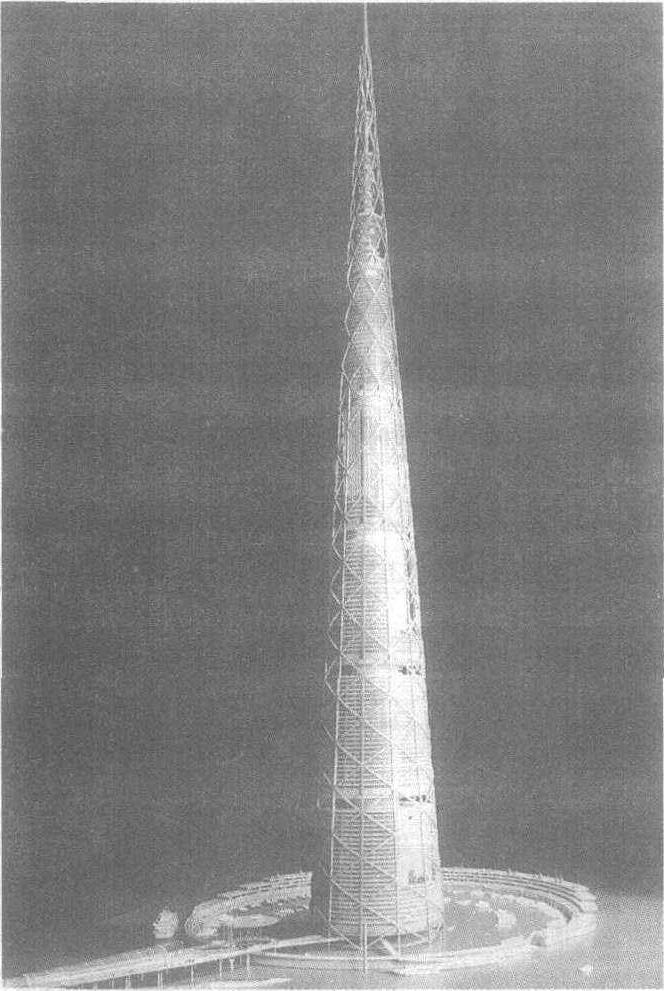 | 释义 | 千年塔日本东京城市建设计划中的海上城市的设计方案,呈细长高耸的圆锥形,位于东京湾海中距海岸数百米处,高840m,底边直径130m,环以直径达400m的环形防波堤,堤内形成一个风平浪静可停泊游船的港湾。塔楼可居住5万人,居民不出塔楼即可完成日常起居等活动。塔基部分布置各色商场、饭馆等商业设施,塔顶有餐厅、酒吧、观光平台、社区交往等配套公共设施,此外,设有可运送150人的高速电梯,塔楼每30层均设置 一个半露天的可进行各种交往的活动平台。防波堤和塔楼在水下连成一体,堤内有车库、车道和辅助用房,用栈桥与海岸相连,汽车可直达塔楼底部。塔楼采用钢结构建造,外环以螺旋形骨架,内侧覆以玻璃,形式简洁而富于现代感。由英国建筑师斯特林和日本大林组合作设计。