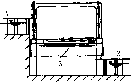 升降船 1.上游 2. 下游 3. 承船厢 |