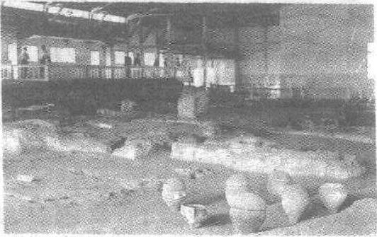 半坡遗址半坡遗址在西安市东6公里处产河东岸半坡村北,是一处比较完整的母系氏族聚落的遗址,时间距今六千年左右。遗址面积达5万平方米,由居住区、制陶作坊区、氏族公共墓地组成。 228 半坡遗址仰韶文化重要遗址,反映仰韶文化村落居住情况,坐落在浐河东岸西安半坡村。包括住室、陶窑场和公共墓地三部分。总面积约五万平方米,居住区周围有一条深宽各约5—6米的壕沟,现存长度为300多米,是为了防御猛兽侵袭而挖的,沟内外有很多窖穴,是公共的仓库,居住区有40—50座小房,是氏族成员的住室,小房有方形的、有圆形的,通常是半地穴式的。每所小房面积约20平方米,室内地表抹有一层草泥土,用火烧过、表面坚硬平滑。室中央有一烧火的灶,为取暖和炊饪之用。房顶是用许多木柱支架起来的,墙壁和房顶都涂抹上泥。村落中心有座长方形大房,面积约160平方米,是公共集会场所。村落之外,东面是窖场区,北面是氏族公共墓地,墓坑排列较规整。墓中一般以陶器为殉葬品。 半坡遗址Banpo yizhi黄河中游新石器时代仰韶文化的遗址。位于陕西西安灞河东岸的半坡村,建于大约公元前4800—前4300年。分早期遗存和晚期遗存,遗址面积5万平方米,揭露面积为1万平方米左右。共发掘房屋遗迹45座,圈栏2座,储藏窑穴250座,陶窟遗址6座,墓葬遗址250座。遗作大体作南北较长、东西较窄的不规则圆形。建筑主要分布在部落中心,居住区分为各有一座大房子的两片地域,之间以一条深1.5米、宽2米的小沟为界,居住区外还有防卫沟。房屋有圆形、方形、长方形,分半地穴式和地面木架两种,体现了新石器时代建筑的形制和分布状况。 半坡遗址全国重点文物保护单位。位于东郊浐河东岸半坡村。系我国保存最完整的6000年前新石器时代母系氏族村落遗址。属仰韶文化类型。1953年春发现。面积约5万平方米,分为居住区、制陶作坊区和墓葬区。发掘面积一万平方米左右。有屋址45处,圈栏址2处,窖穴200多个,窑址6处,墓葬250处。出土有大批生产工具和生活用具,还有许多兽骨、果核和腐烂的粟谷等。房屋有早期的半地下室,和晚期的地面木架结构,建筑材料是草泥土和木料。门均向南开,房子中间有一烧火坑。屋旁有一个或几个地窖,是半坡人的公共仓库。围绕居住区有深、宽约6米,现存长度300多米的大围沟,是整个居住区的界线,也用来防御野兽的侵害。母系氏族社会的重大发明是陶器的制造。半坡遗址上的烧陶区是目前我国保存最古老的陶窑遗址之一。陶器有灶、罐、鼎、钵、盆、碗、杯等60多种。其中人面鱼纹盆和尖底汲水瓶最负盛名,是仰韶文化的精品。墓葬分布有二人、四人同性合葬的遗骸,有公共墓地。葬式有单人仰身直肢葬、俯身葬、合葬等。1957年,在此建成我国第一座遗址博物馆。 半坡遗址位于西安东郊半坡村的新石器时代遗址。面积约5万平方米。1954年发掘。分布着氏族居住区、公共墓地、窑场和大壕沟等遗迹。出土大量陶、石、骨器等生产工具和生活用具。彩陶发达,后为红地黑彩,以几何纹、动物纹、人物纹为主。现在原地建有半坡遗址博物馆。 半坡遗址位于西安城东郊浐河东岸,半坡村北。原始社会母系氏族公社村落遗址,反映了那个时代的生活情景,遗址面积约2000平方米,房屋有圆形和方形两种,屋门朝南,屋内有烧火坑,近处有地窖群,大概是用来存放食物,遗址中心是一座大房屋,大概是议事堂,是原始人开会的地方。周围有深沟和墓葬地。1958年在原遗址上建立半坡博物馆。生产工具生活用具及文化艺术品都陈列其中,便于观览。 半坡遗址仰韶文化时期典型的村落遗址。1953年在西安市东郊的半坡村发现。现已发掘房屋遗迹四十五座,圈栏三座,烧制陶器的陶窑六座,窖穴二百多个,共清理墓葬二百五十多座,总面积达一万多平方米。整个村落为一不规则圆形,面积约五万多平方米,围绕村落挖有一条深、宽各5米多的防御沟。东面为烧陶窑场,北面是氏族公共墓地。村落中部有一道小沟,将居民住宅区分为南、北两个部分,可能是两个母系氏族间的界沟。两个氏族各有一座公共活动用的大房子,在它们周围各有许多氏族成员居住的小房子。房子周围有许多地窖,还有饲养家畜的圈栏。房子形制有方、圆二种,一般面积十到三十多平方米。房子地基多为半地穴式,上部以柱、椽、梁构成屋顶建筑,每座房子中央均设有火膛。遗址内出土的生产工具主要有石斧、石铲、石锄、石锛、石凿、石球、网坠以及石磨盘和砍伐器等,还有骨锥、骨铲、骨刀、骨针、箭头、鱼钩、鱼叉以及陶纺轮和陶锉等。其生活用具主要为陶器:炊事用具有陶甑和陶罐,饮食用具有碗、钵、盆、盂、杯、豆等,汲水用具有尖底瓶和陶壶等,储藏粮食和食物的用具有瓮、缸以及大型陶罐和陶盆等。陶器上不仅有非常精湛的彩陶绘画和陶塑艺术,还有形式多样的刻划符号,估计为半坡先民当时使用的原始文字。公共墓地实行单人葬和迁移合葬。合葬是男女分区埋葬,男子大多是二次迁移集体葬。合葬仅有母子同墓,而没有一对成年男女合葬、父子合葬。这种葬式反映了母系氏族制的某些特点。死者的随葬极少,仅有少数生产工具。幼儿夭折时大都瓮棺埋葬在母亲住屋附近,有的则与母亲合葬在公共墓地。这些发掘资料表明,半坡人处在原始社会母系氏族公社阶段,过着没有阶级,没有剥削;共同