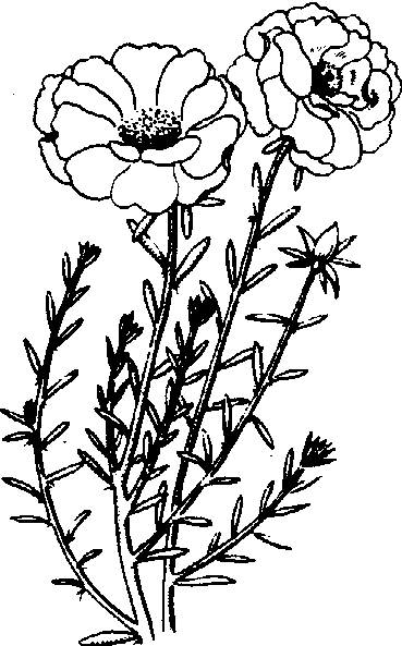 半支莲Portulaca grandiflora又名龙须牡丹、松叶牡丹。双子叶植物。马齿苋科马齿苋属一年生肉质草本。株高10~20厘米。叶圆柱形。花蔟生茎枝顶部,次第开花。花白红、粉、黄、白、橘黄、紫红等,有的还带有色斑或间色。单瓣或重瓣。自然盆栽不需特殊管理,生长良好,夏秋季鲜花不断。地栽庭院或花坛内,草坪边缘或假山石缝隙中,鲜花似锦。夏季取茎枝扦插沙壤土上,也容易成活。种子自然落地,来年灌过水或春雨过后,也会自然成苗。半支莲花好色美,耐粗放管理,北京市民喜爱在窗前、庭院种植。