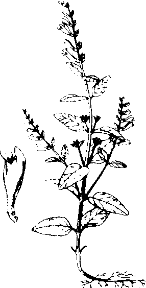 | 释义 | 半枝莲barbed skullcapScutellaria barbata D.Don,又称并头草、牙刷草。唇形科,黄芩属。多年生直立草本。分布于中国江南各省。印度至中南半岛、日本亦有。生于水田边、沟边、池旁或湿地等处。茎方形,不分枝或少分枝,无毛。单叶,对生,叶片三角状卵形或卵状披针形,叶缘有钝齿,叶基圆形,具短柄。每节上偏生2朵花,整个花序类似总状;花柄于花后下垂;花萼短小;花冠唇形;2强雄蕊。4个小坚果,果面有小瘤状突起,成熟时,从宿存的花萼中脱落。以温暖潮湿环境为好。用种子繁殖,春季播种,夏秋间采收花期全草。全草入药有清热解毒、活血祛瘀、消肿止痛的药效,可治妇科病,亦可用于各种炎症及蛇咬伤等症。