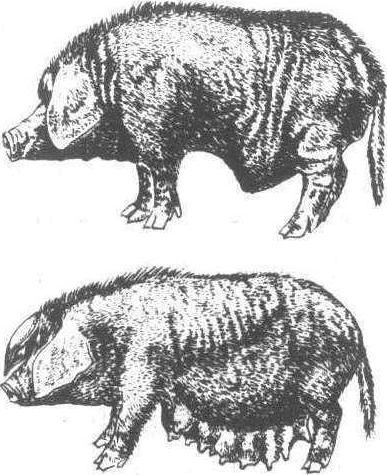 | 释义 | 华北型猪中国地方猪种的六大类型之一。分布于秦岭、淮河以北地区,包括自然区划的华北、东北和蒙新地区。这些地方气候干寒,农作物以杂粮为主,1年1~2熟,饲料种类多,但量不足。日粮中粗饲料比例高,历史上习惯放牧饲养,或放牧与舍饲相结合,形成猪种体躯高大、四肢粗壮、头嘴直长、背腰狭平、毛密皮厚、鬃毛粗长、被毛黑色,冬季密生棕色绒毛等外貌特征。乳头8对左右,产仔12头以上,护仔性强。肉猪采用“吊架子”育肥,生长慢,增重低,瘦肉较多,肉味香浓,腹油量大。有大、中、小型之分。民猪、八眉猪、黄淮海黑猪等属此类型。